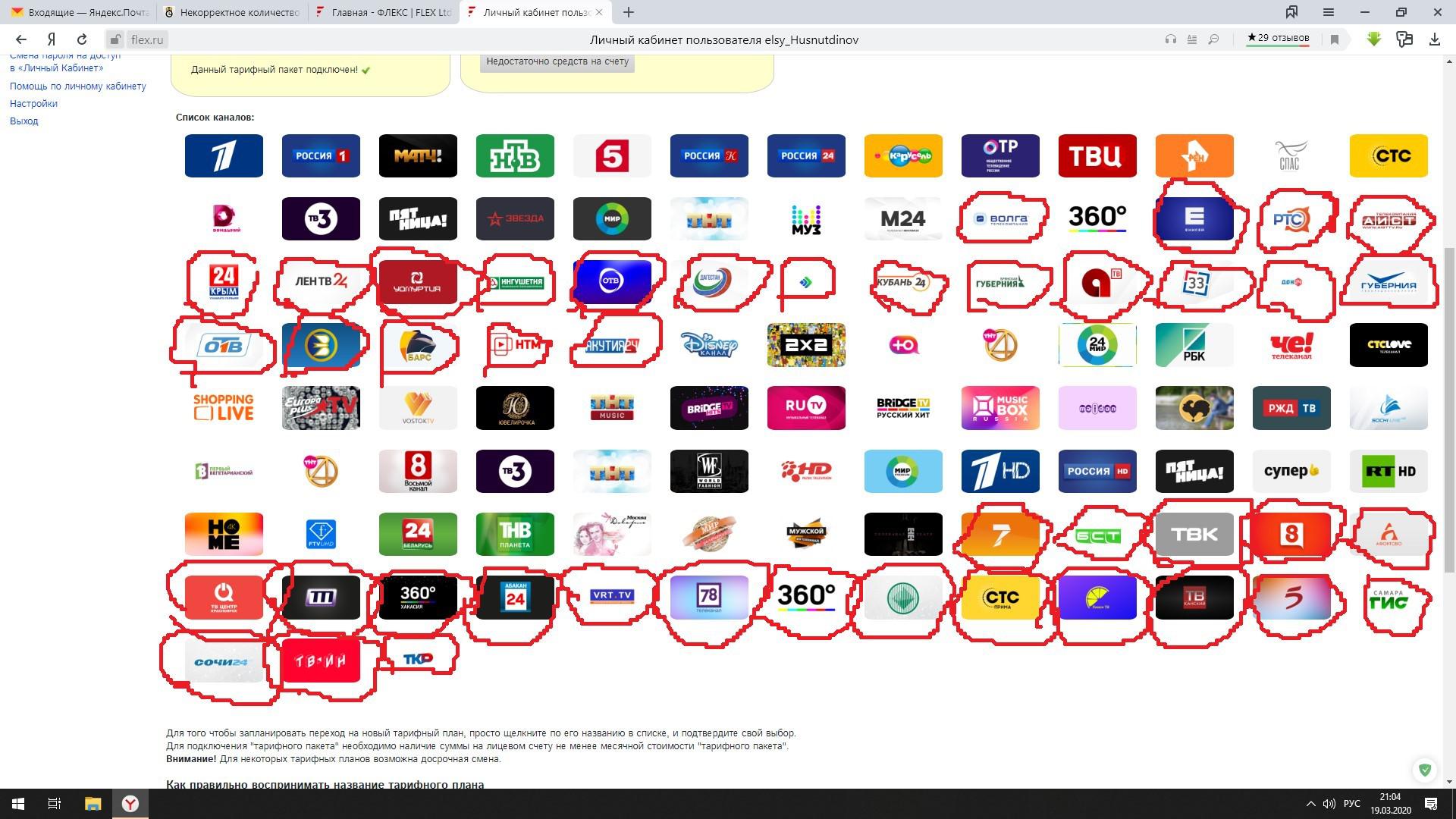 Спасибо за скриншот, теперь понятно о чем речь. Указанные каналы, обведенные в кружочки - это региональные и предоставляются только в том регионе, в котором фактически находится абонент. На ряде иконок каналов даже есть подписи - Сочи, Крым, Хакасия и т.д. Все указанные вами каналы - региональные, поэтому вы их не можете просматривать.